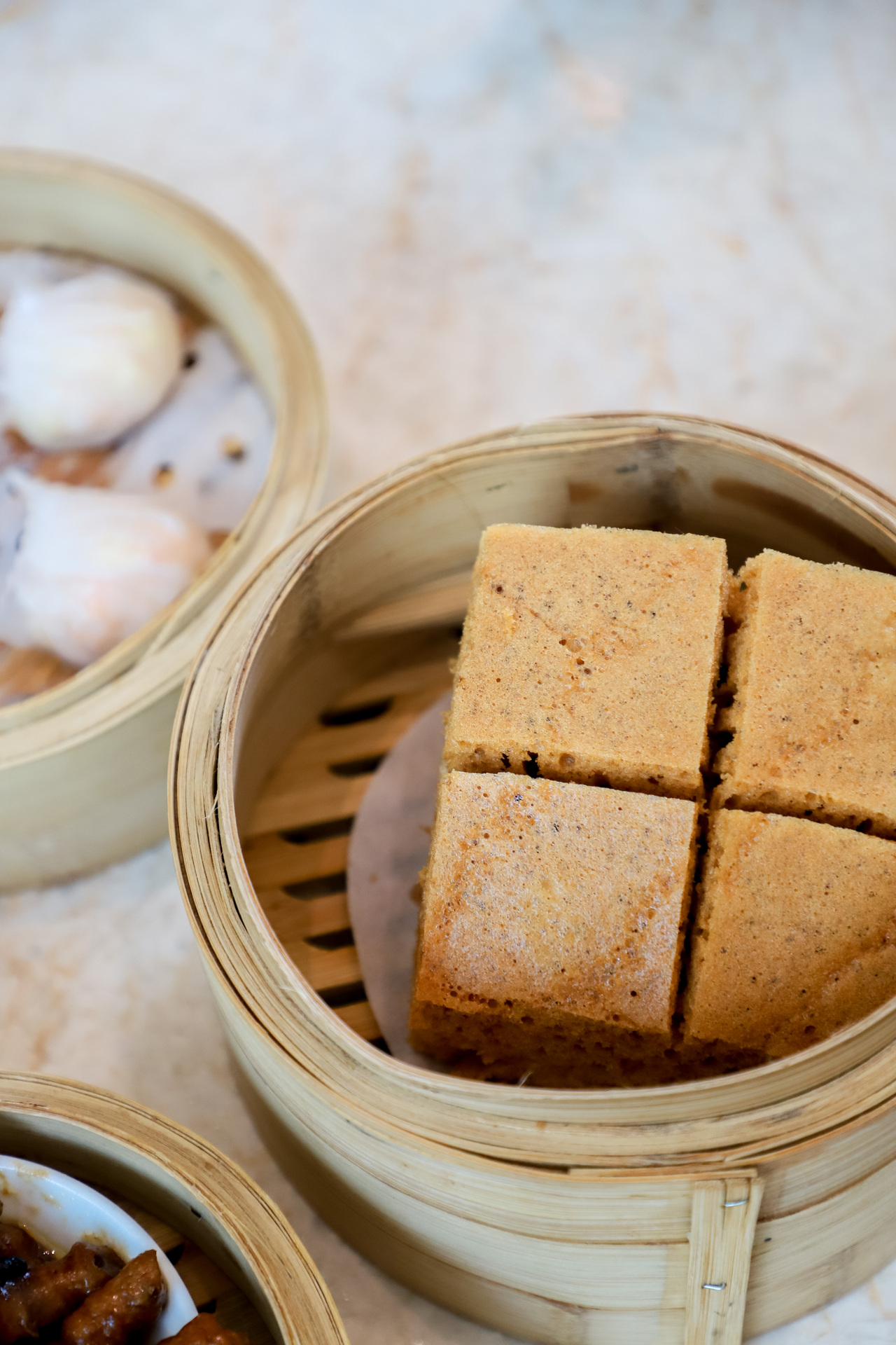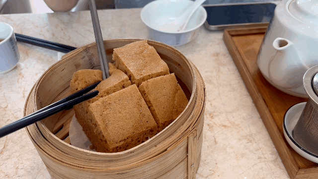 松软香甜的马拉糕,也是广东茶楼很受欢迎的点心之一,新鲜出炉的马拉糕散发着红糖的香气,筷子轻压便会回弹,非常蓬松,平平无奇的外表深藏无穷美味。
