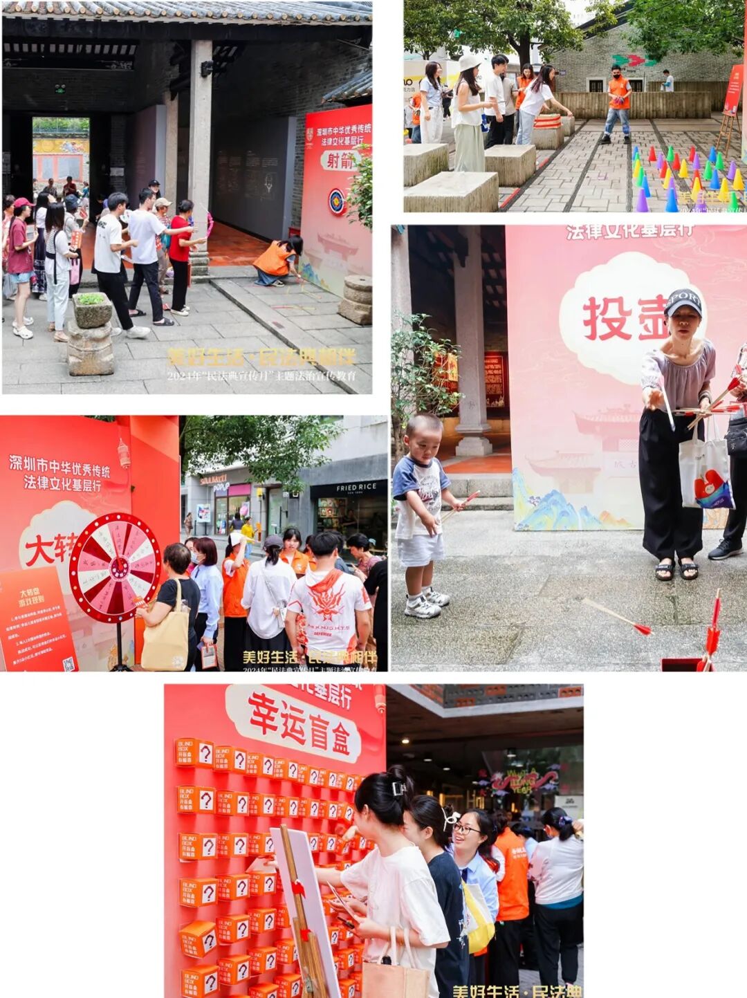寓教于乐,融学于趣。现场还设置了普法主题互动游戏、与阿鹏小布合影打卡等环节,市民群众可以向工作人员领取集章卡,分别到南头古城的五个打卡点玩投壶、射箭、套圈等民俗游戏并集章,集齐以后到社区党群服务中心抽取幸运盲盒、领取普法奖品,体验一场“普法+传统文化”的有趣之旅,使群众在逛古城、观人文之余,能更好地体验和感受中华优秀传统法律文化,更积极地参与法治宣传教育。现场参与的群众络绎不绝,长长的游戏队伍拦不住大家的热情,许多群众在活动临近结束时仍觉意犹未尽。