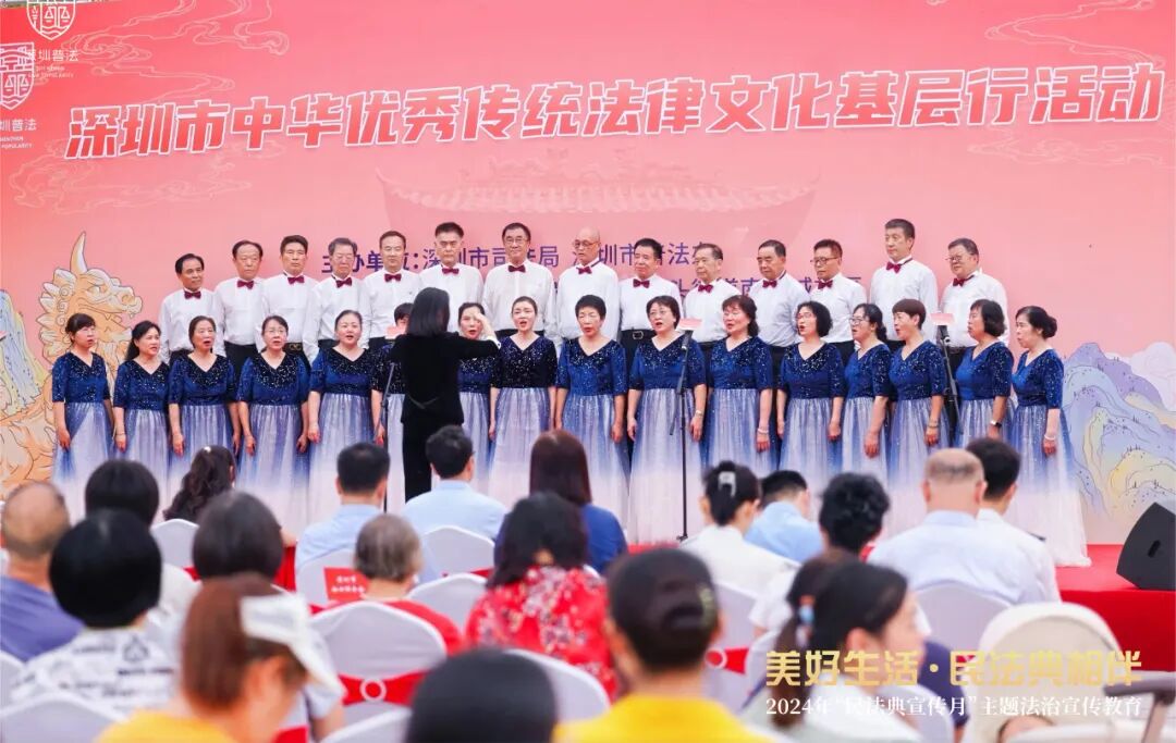 为推动法治文化与传统文化、地方文化的有机融合,以群众喜闻乐见的形式将法律送到人民身边,让民法典深入人心,活动邀请了深圳市福田区老年大学和谐之声合唱团来到现场,为市民群众演绎《我的祖国》等经典曲目,更有市直机关工委等普法责任单位加入普法微集市,为大家普及相关法律法规知识,同时打造“解忧杂货铺”,安排社区法律顾问、“法律明白人”等围绕民法典等相关法律问题进行答疑解惑。