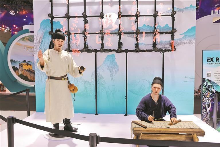 在文博会9号馆,一家大连企业带来人形机器人。深晚记者看到,两位大诗人脸上的皱纹和胡须都纤毫毕现,手指关节也运动自如,发声和表情配搭协调。据介绍,这种类人机器人通过大量语料学习和表情训练,能再现人物的表情特征和动作习惯,让机器人更像人。