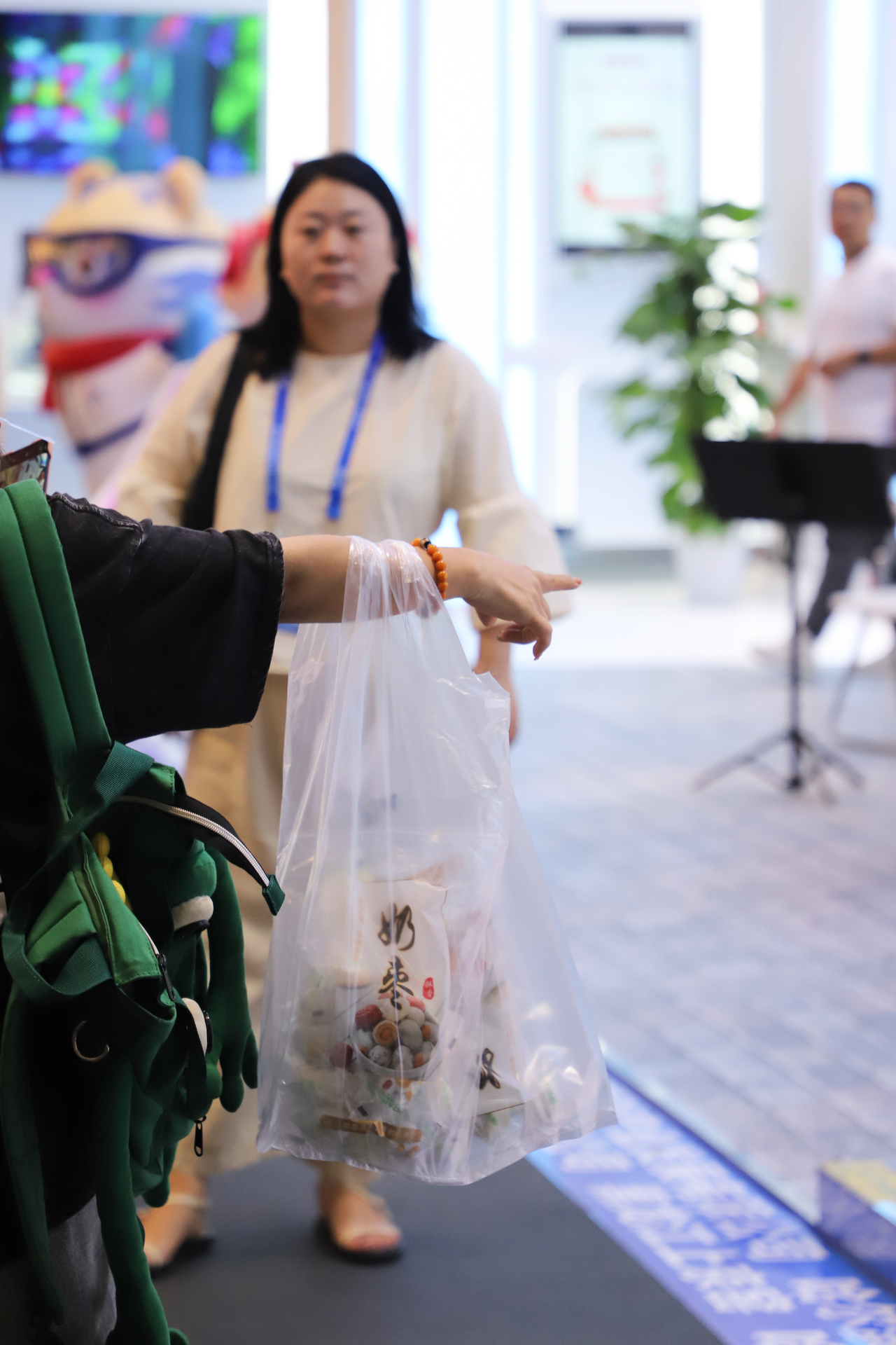 当然,被游客带回家的,还有来自各地的美食。记者碰到两位刚从新疆展台离开的福建姐妹,询问得知,她们在展台小姐姐的热情推荐下,尝试了奶枣后立刻被其味道俘获:浓郁的奶香味一入口即散开,红枣的甜味恰到好处地增加了风味层次,便毫不犹豫地“剁手”了两大包。