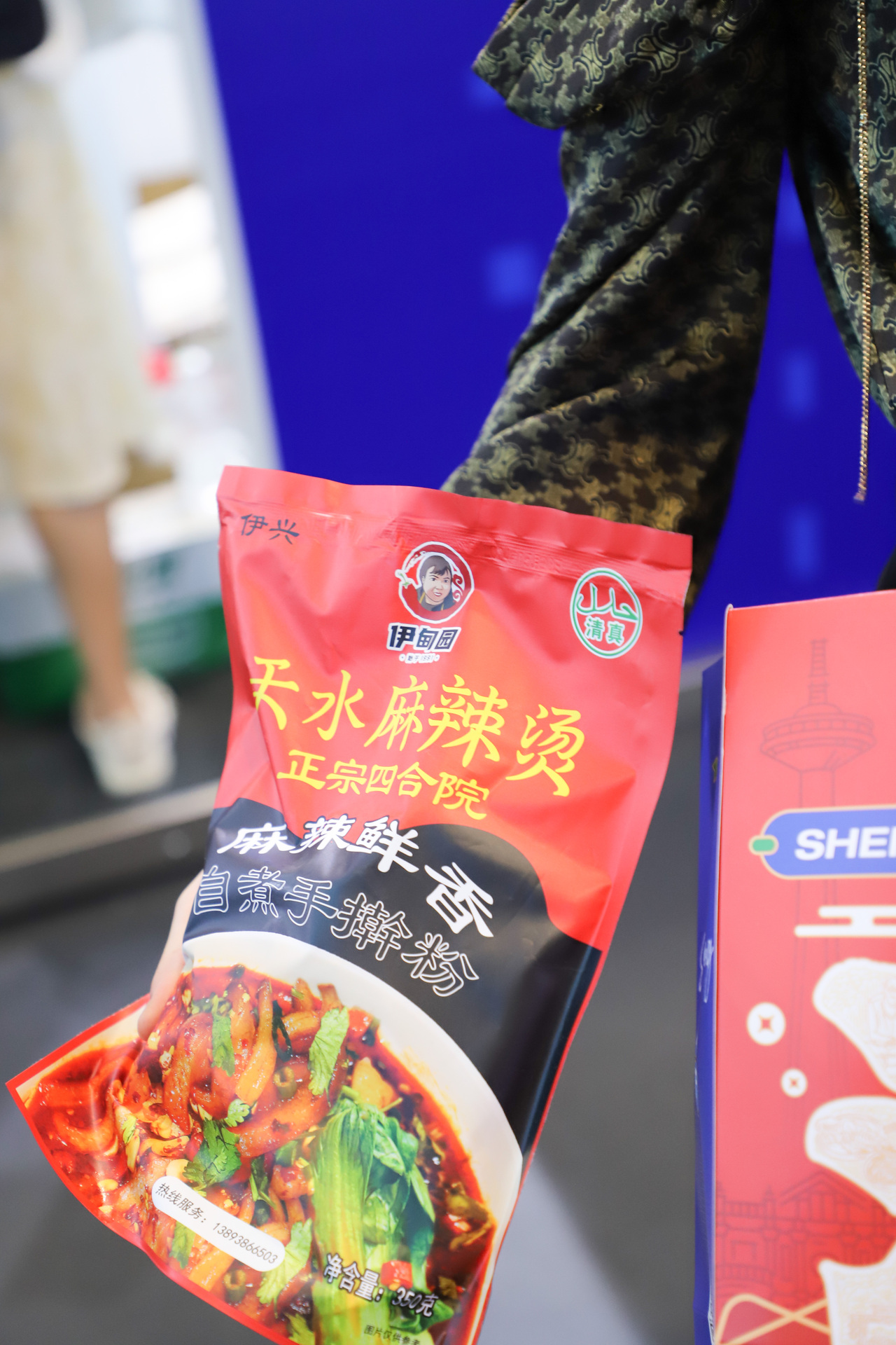此外,今年的天水麻辣烫爆火出圈,成为麻辣烫领域的热门新贵。在12号馆,不仅可以现场品尝天水麻辣烫,还可以购买回家自行烹饪。来自内蒙古的苗小姐为品尝各地特色美食而来,她当然没有错过天水麻辣烫,同时还购买了多种东北特产。“大饱口福”,她说。
