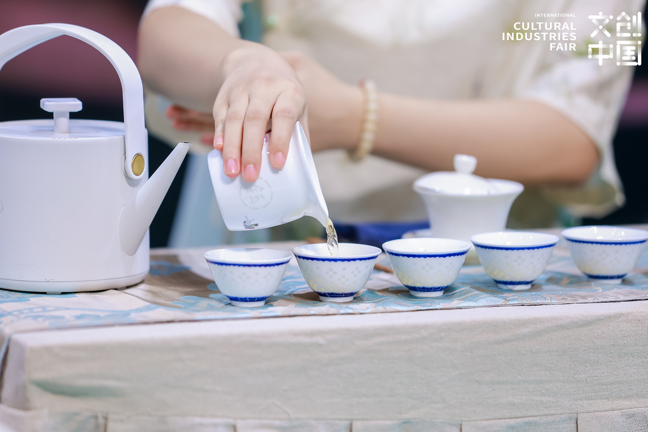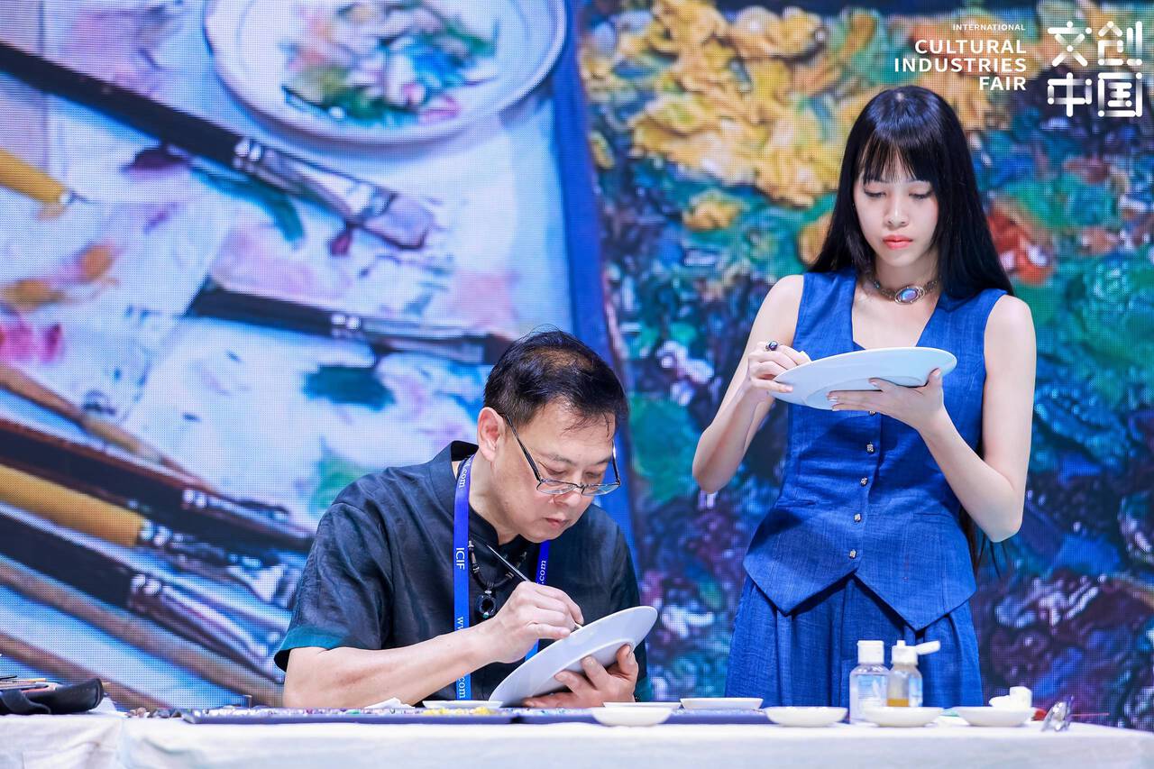 23日,“波伦明丹技法”创始人洪德清在现场演示精巧的瓷画技艺。茶台也被搬上舞台,茶艺师邀您现场品茗。别具特色的国风舞蹈和乐舞敦煌节目等都尽显传统文化之美。