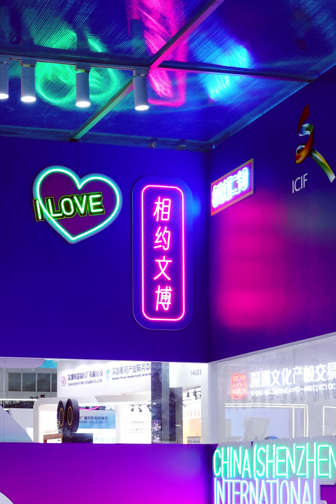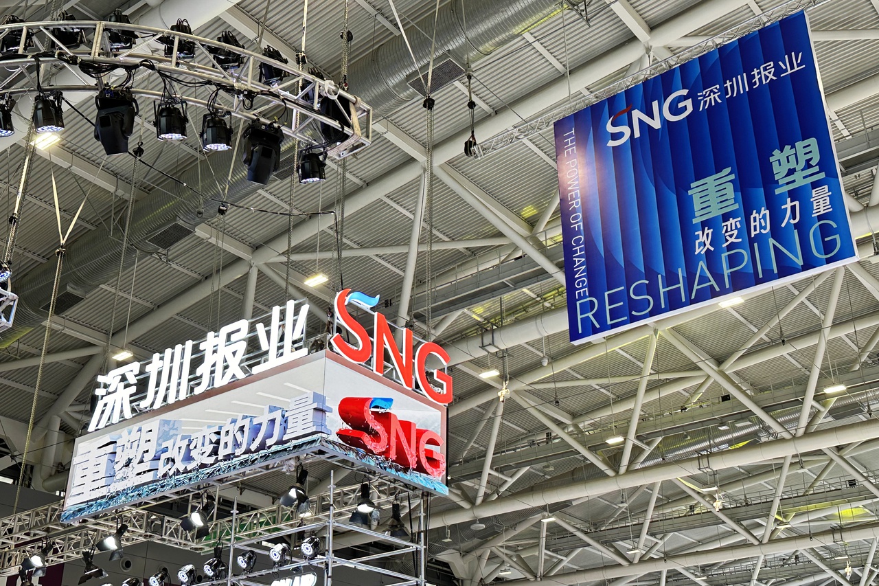 一踏进深圳报业集团的展位,赛博朋克的气息便扑面而来。