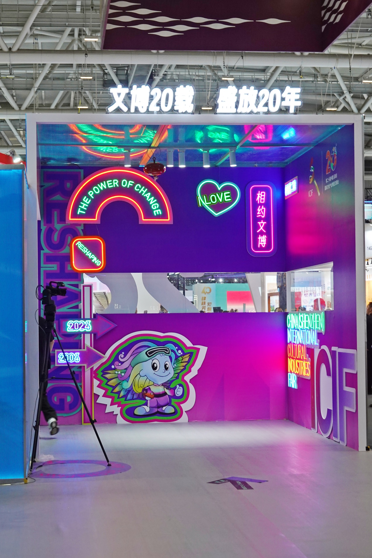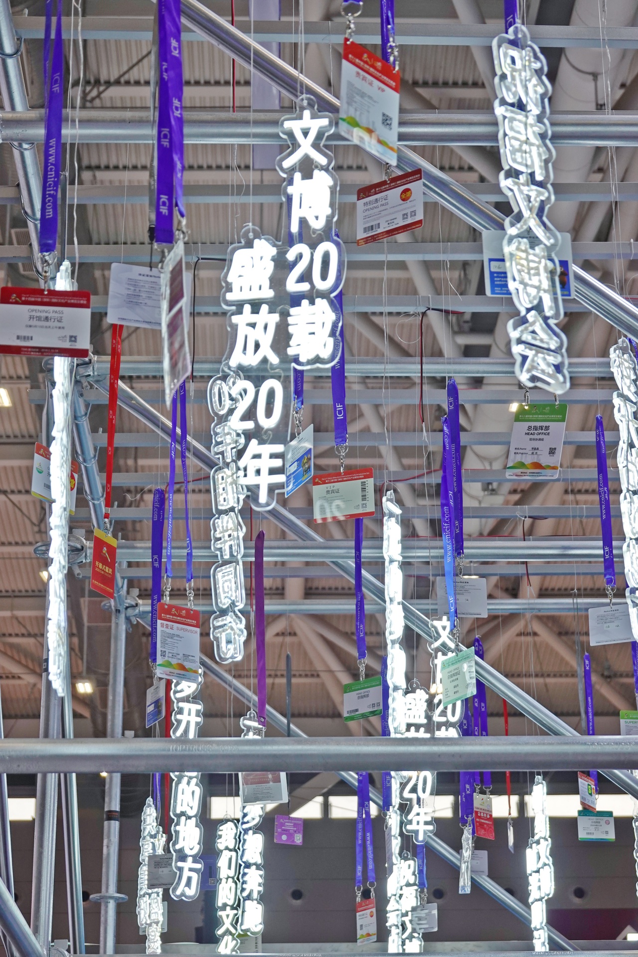 今年是文博会举办的第二十年,展区内特别布置“文博20载 盛放20年”文博会20周年主题回顾展。走过长廊,可以看到文博会20年来的发展历程和主要成就,宛如时间的印记,静静地诉说着“中国文化产业第一展”的辉煌历程。