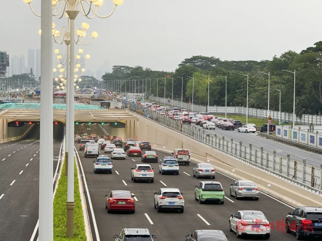 滨海大道(总部基地段)交通综合改造工程项目西起沙河东路立交,东至广深高速,跨南山、福田两区,全长5950米。其中,总部基地段全线下沉,下沉隧道段长度为1560米,其余地面改造段长度为4390米。此次下沉隧道主线开通后,可有效提升滨海大道通行效率,改善深圳湾超级总部基地交通配套。滨海大道(总部基地段)交通综合改造工程剩余的辅道建设将于今年下半年陆续完工,届时将形成主道双向8车道和辅道双向6车道的整体规模。