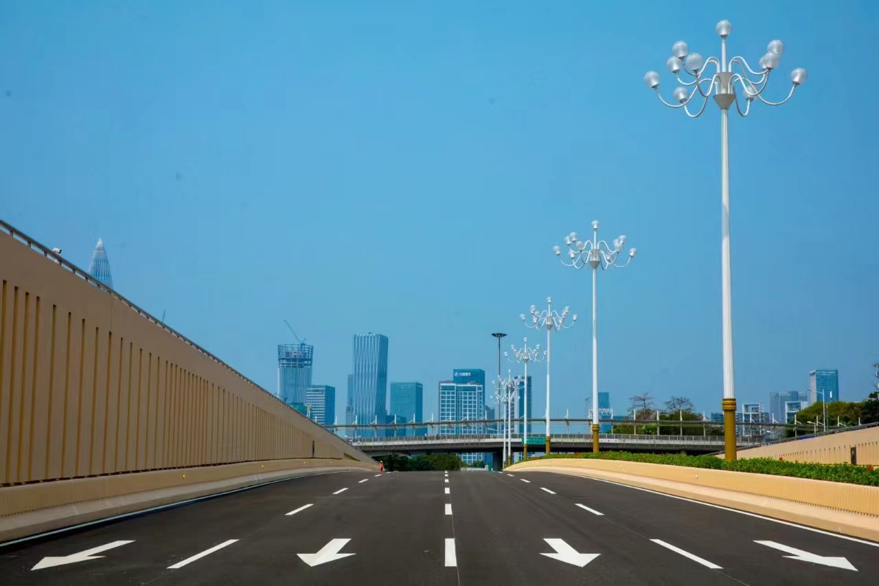 滨海大道(总部基地段)交通综合改造工程剩余的辅道建设将于今年下半年全面完工,届时将形成主道双向8车道和辅道双向6车道的整体规模。项目建成后,滨海大道将有效串联桂庙路隧道、滨河大道,缓解了滨海大道总部基地段交通瓶颈;下沉隧道预留2进2出匝道连接深超总地下路网,可满足深超总开发产生的大量交通到发需求;深圳湾超级总部基地段将形成“地面+地下”立体化交通,能有效缓解滨海大道交通瓶颈,同时释放出一片面积约10万平方米、相当于14个标准足球场的巨大绿地,消除滨海大道对深圳湾景观带的分隔,促进城市建筑与滨海景观融合,提供更高品质公共空间,打造湾区活力新引擎。