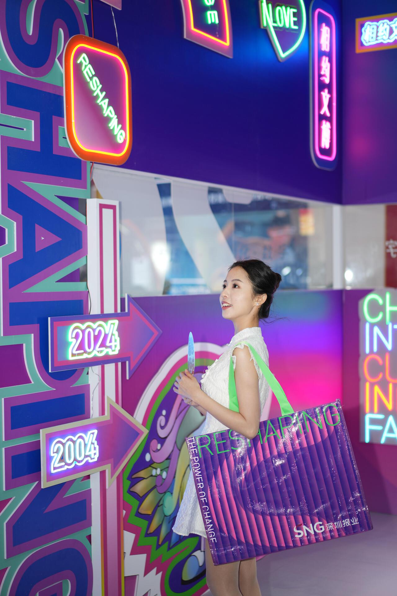 本届文博会期间,深圳报业集团“显眼包”成为场馆内一道亮丽的风景。
