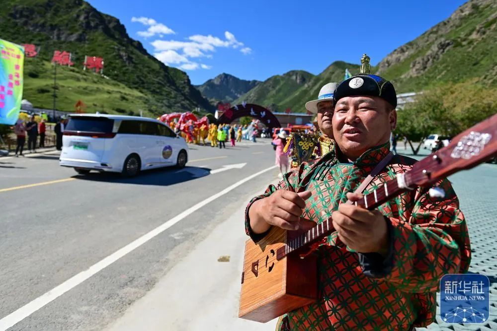这是6月1日在新疆塔城地区乌苏市独库公路驿站拍摄的通车仪式现场。