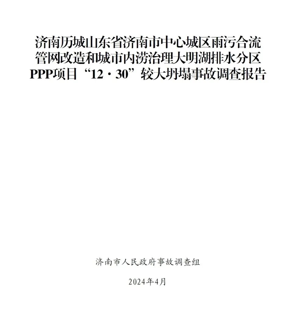 近日,济南应急管理局发布《济南历城山东省济南市中心城区雨污合流管网改造和城市内涝治理大明湖排水分区PPP项目“12·30”较大坍塌事故调查报告》(下称《调查报告》)。