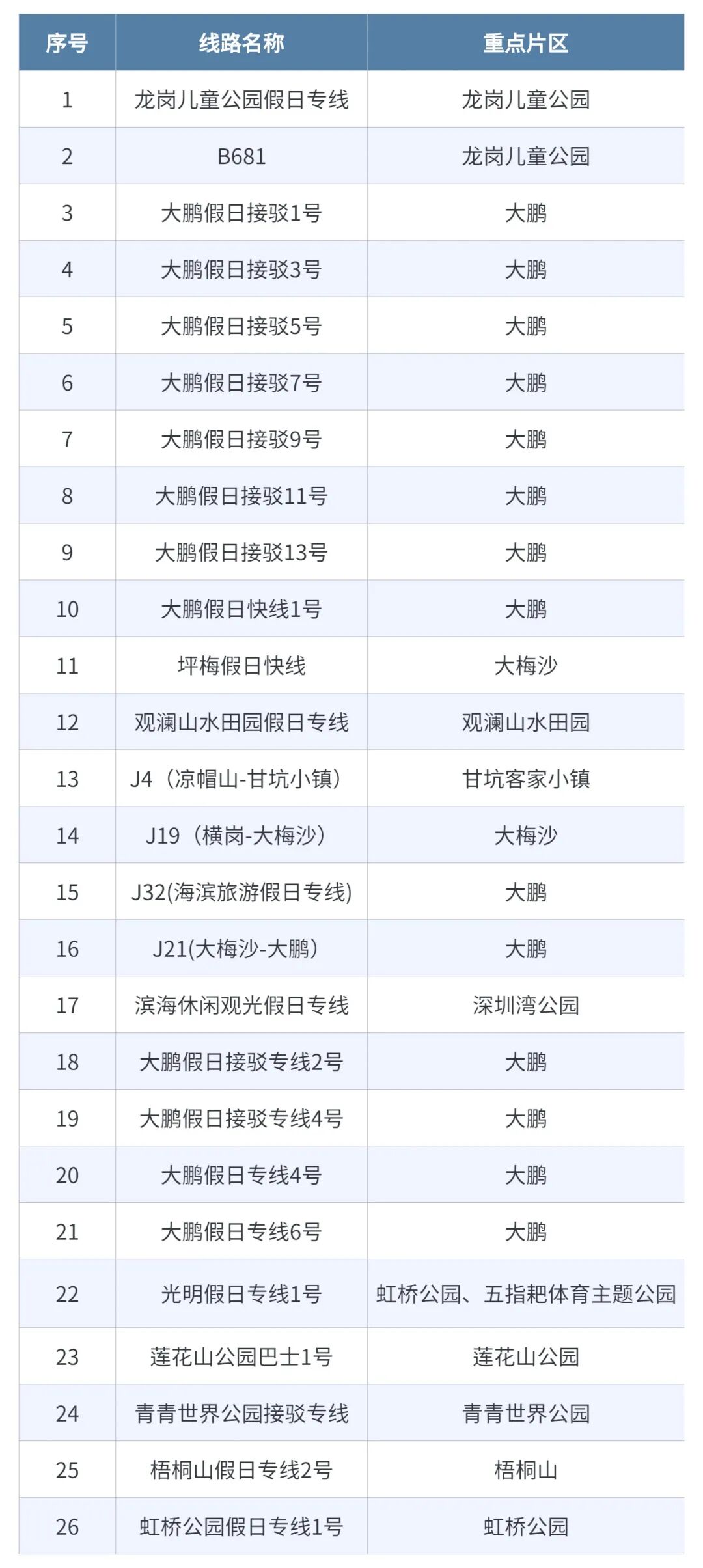开行以下26条假日专线