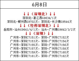 为满足广大市民和旅客朋友的出行需求,6月7日至11日期间,深圳铁路加开旅客列车123列。其中,深圳北站加开往返汕尾、潮汕、和平、湛江西、长沙南等方向的动车组列车;深圳站加开往返广州东方向的城际列车和长沙方向的普速列车。