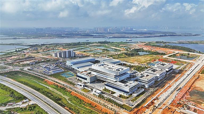在湛江湾实验室园区研发大楼南塔一楼的渔业大数据中心,电子大屏上可以看到种业供应、渔业养殖、渔业捕捞、渔业加工、物流服务等行业资讯。作为粤西地区首个获批设立的省实验室和区域重大创新平台,湛江湾实验室汇聚高端人才,潜心攻关海洋科技,取得了全球首例深远海智能渔业养殖平台(“湛江湾1号”)、全潜悬浮定深柱稳式综合试验养殖平台(“海塔1号”)等代表性科研成果。