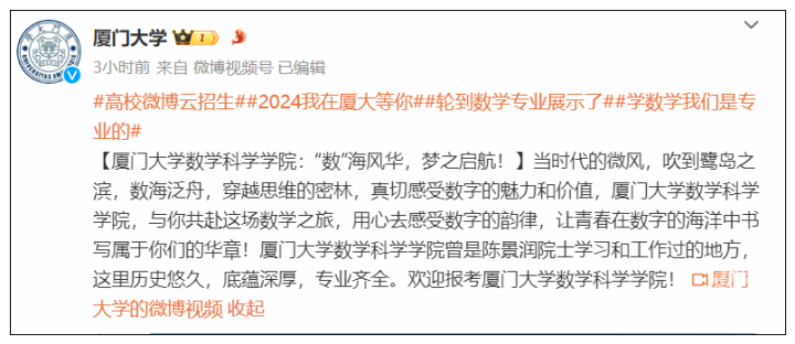 “与你共赴这场数字之旅,用心去感受数字的韵律”,厦门大学搬出了“陈景润院士学习和工作过的地方”这块金字招牌。