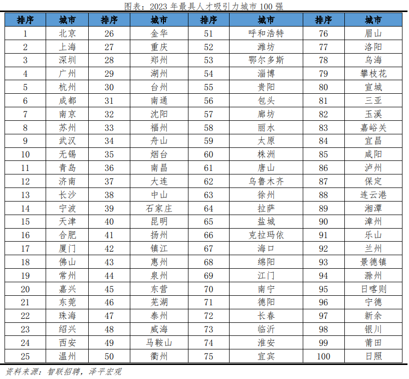 而近日发布的《中国城市人才吸引力排名:2024》中