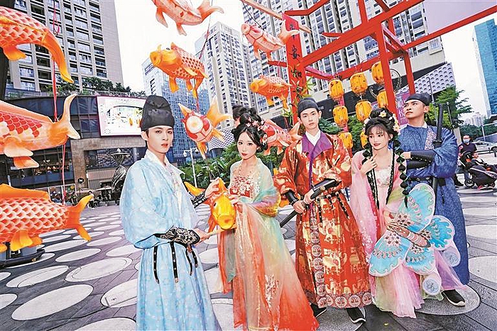 沉浸式活动吸引众多深圳唐服“同袍”齐聚现场,共襄盛典。一个个唐风女子穿行节日大道,她们环佩叮当、衣香鬓影,她们风姿绰约、风华正茂,与卓悦中心的古风装饰相映成趣,在“传统文化复兴”的时代呼声下,展现着国风传承的年轻力量。