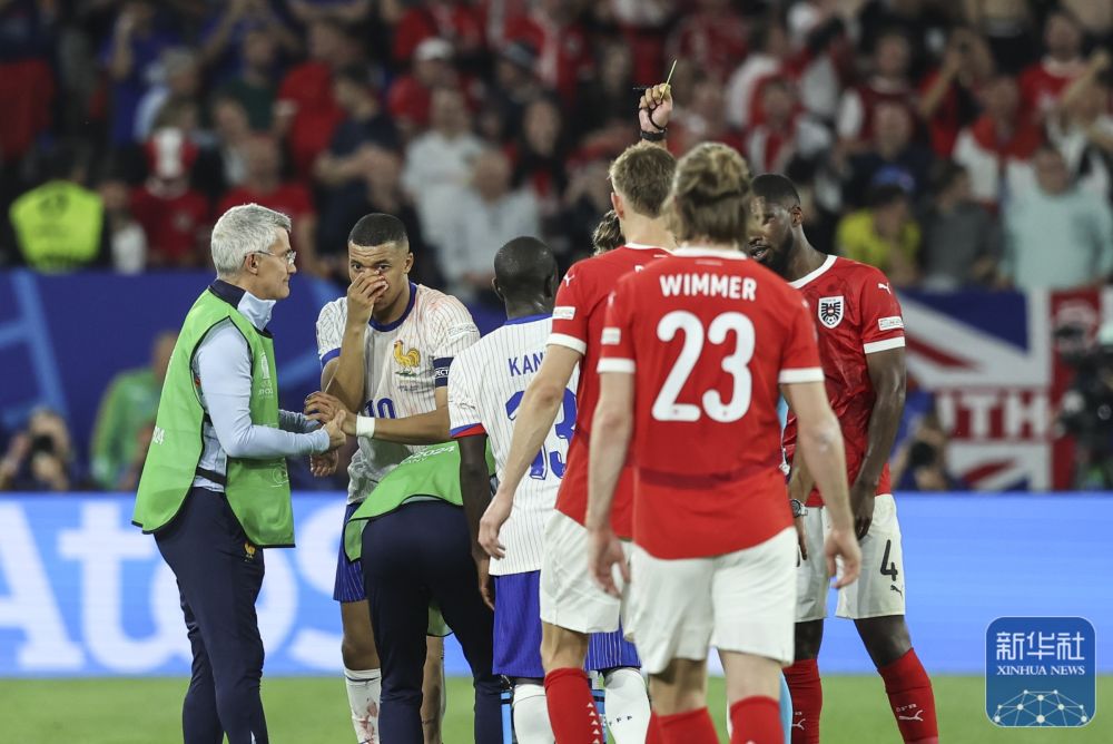 “我现在就是想复仇,我在欧洲杯上的表现还有待证明。”姆巴佩赛前如是说。只可惜在本场比赛的最后时刻,他不幸在一次头球中撞到对方球员肩部,鼻梁骨被撞断当场流血倒地。姆巴佩戴着护具被救护车送往医院,经诊断为鼻骨骨折。