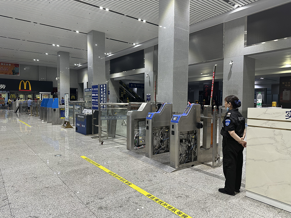 20日18时许,澎湃新闻探访发现,桂林站门口的道路正在清淤,车站内已无积水,车站周围有大量人员在作业。车站内,有维修人员拿着毛巾擦拭过闸机,并拿吹风机对着吹。该维修人员表示,过闸机泡了水,是否损坏,还不清楚,只能先擦干、吹干看看。不过,少数乘客已经在此站上下车了。