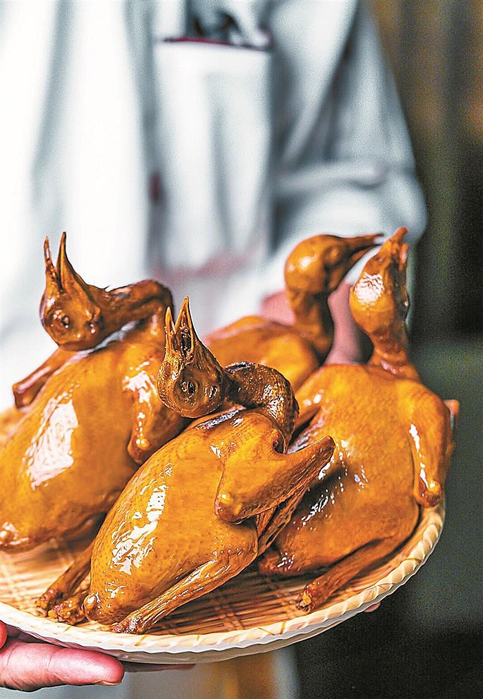 第一鸽”,以鸽肉为主要食材,先腌后煮再风干,最后油炸而成,口感外酥里嫩。