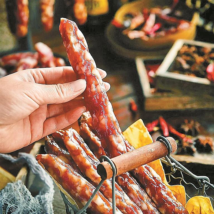 在广式腊肠制作工艺的基础上,融入公明喜鲜喜甜的特点,制作出别具一格的地方风味。