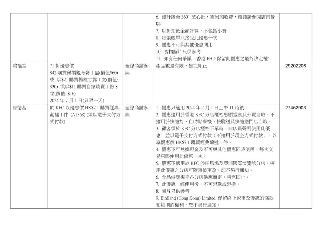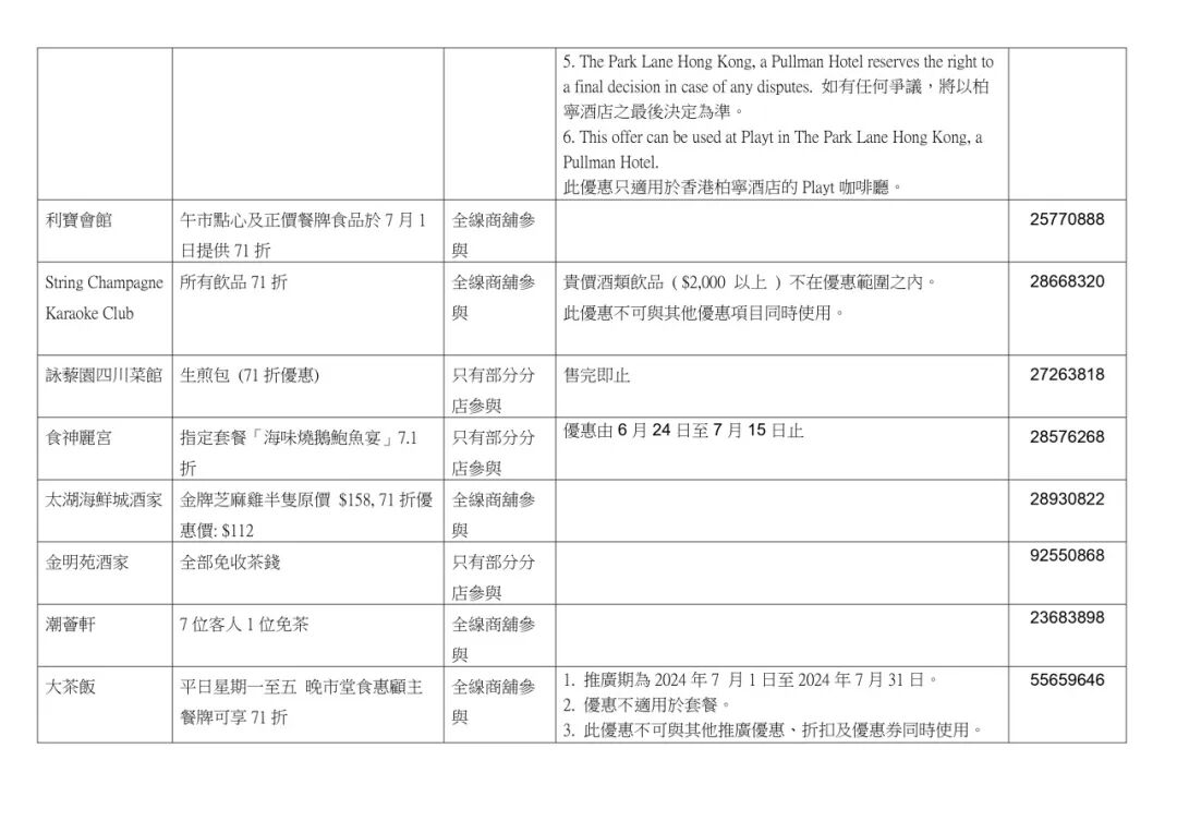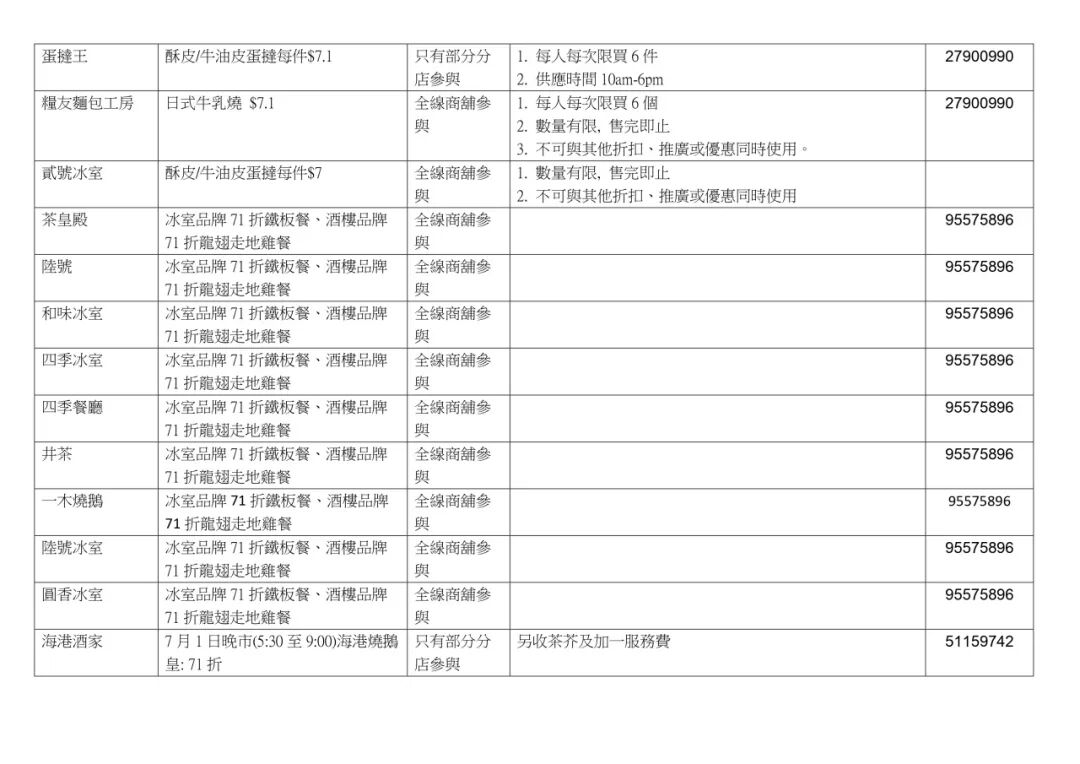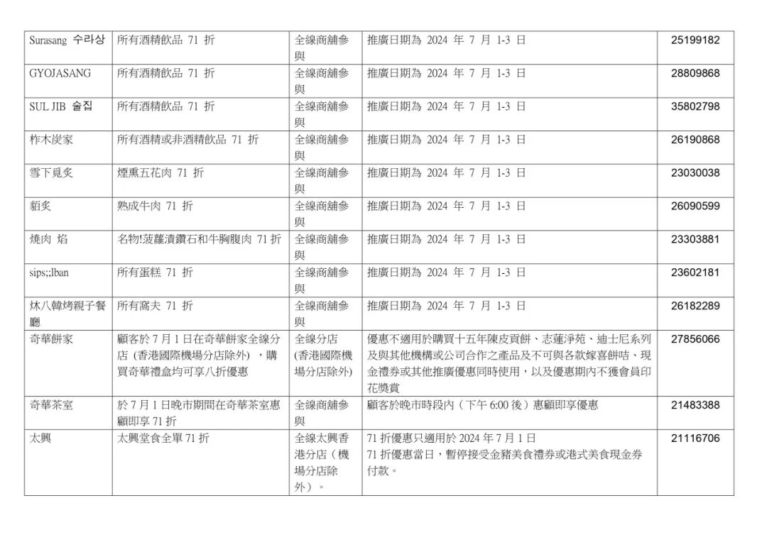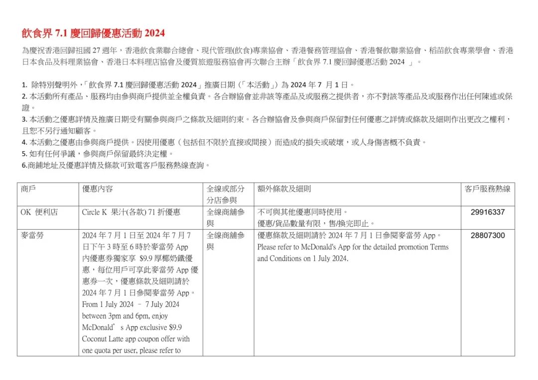 香港饮食界也推出“饮食界7.1庆回归七折大优惠活动”,超2000家香港餐饮店在7月1日当天推出招牌菜品7.1折优惠,更有商户将优惠从仅7月1日延长至整个7月,与香港市民和游客共同分享庆回归的喜悦。