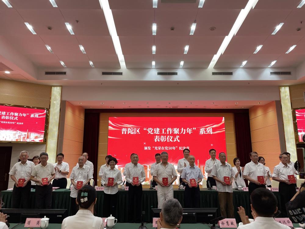 “全域聚力齐奋进 挺膺担当建新功”——上海市普陀区庆祝中国共产党成立103周年座谈会暨新兴领域党的组织体系全覆盖工作推进会上,陈蘅华和老伙伴们接过颁发给他们的“光荣在党50年”纪念章,笑容满面。