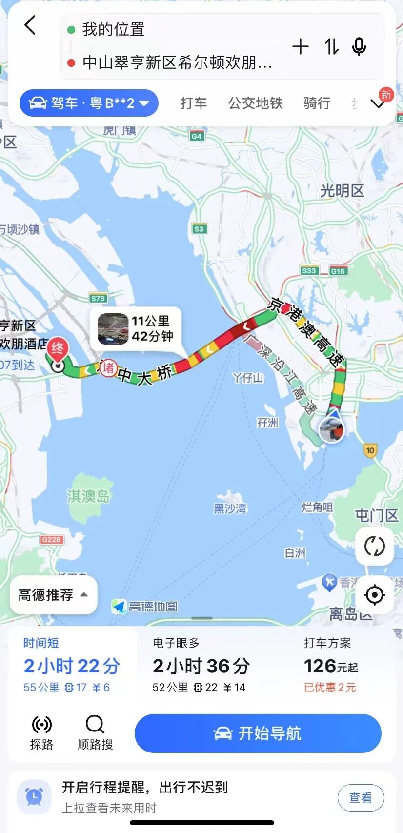 导航显示经深中通道