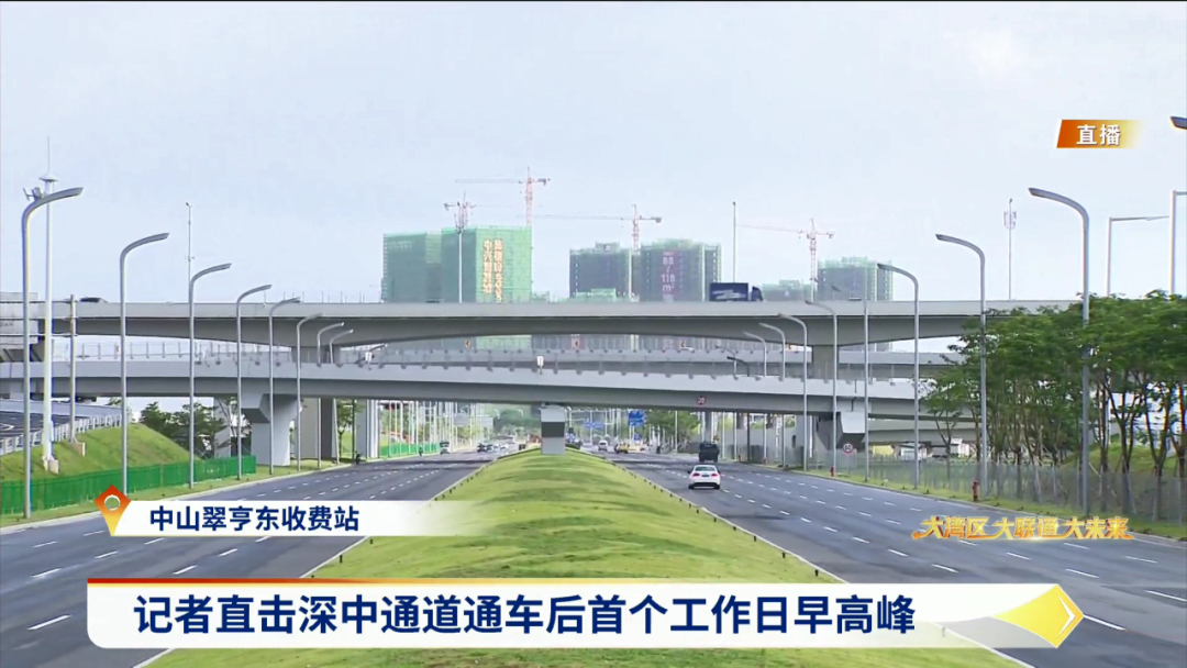 7月1日早上8点,记者在深中通道机场收费站看到,双向24个收费通道全部开启,道路交通总体平稳有序。
