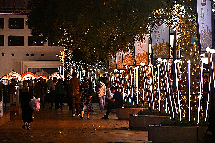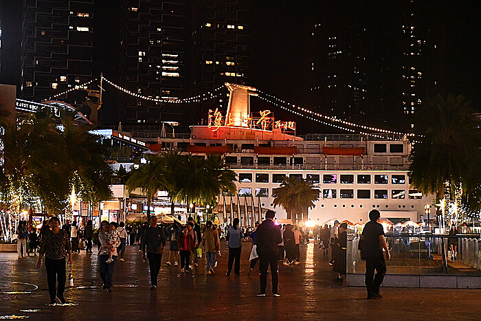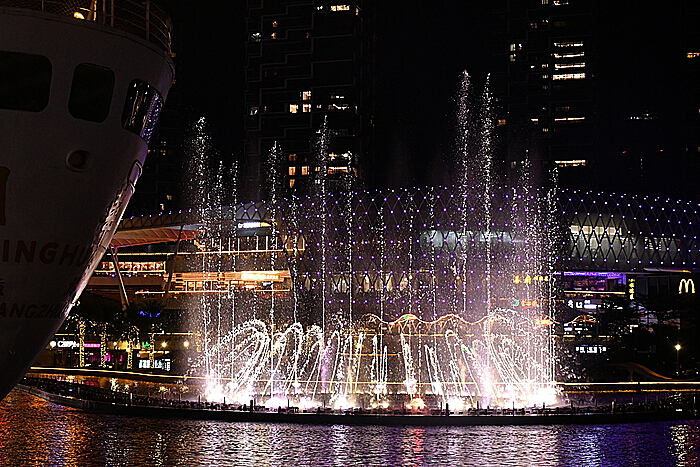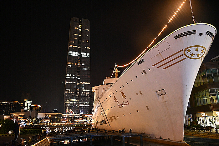 对于第一次来海上世界的游客,最重要的仪式感,大概就是明华轮合影留念,40岁的“老网红”,魅力一如既往。邮轮前的音乐喷泉,更增添了这份夜景的故事感。