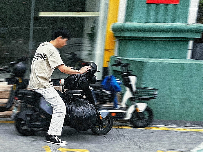 走在街上可以看到不少进进出出的人,手里都少不了“拿货”标配——大号黑色塑料袋,里面装的是沉甸甸的“战利品”。