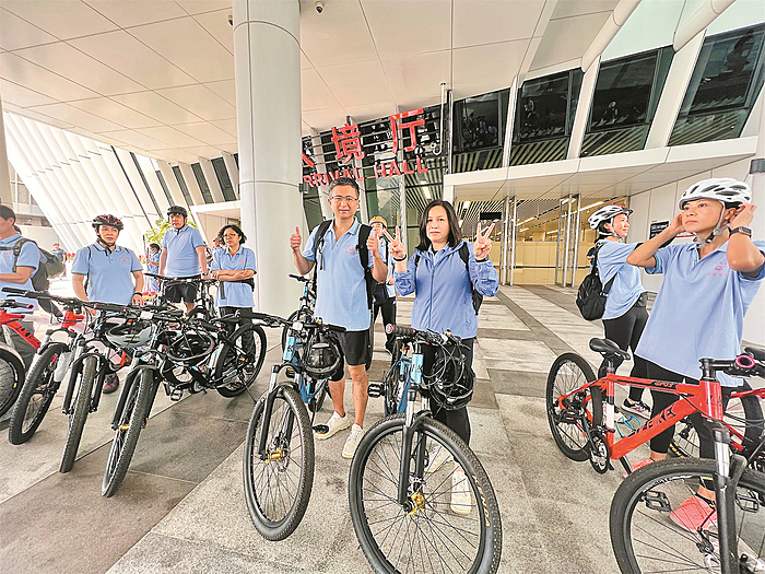 ▲2023年3月25日,陈月明(右三)参加深港跨境单车游活动。