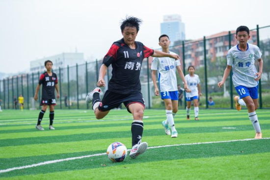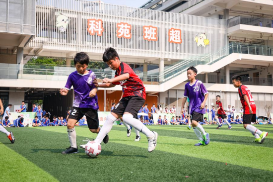 南山学子在深圳市中小学校园足球班级联赛中激烈比赛。图片来源:南外集团