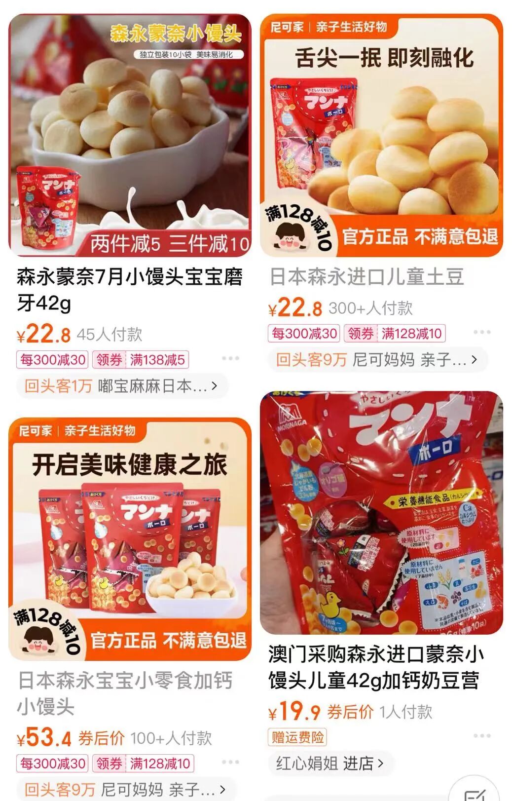 在线上购物平台搜索可发现,这款森永小馒头目前仍有销售,虽然官方渠道已经下架,但一些代购店仍在售卖。