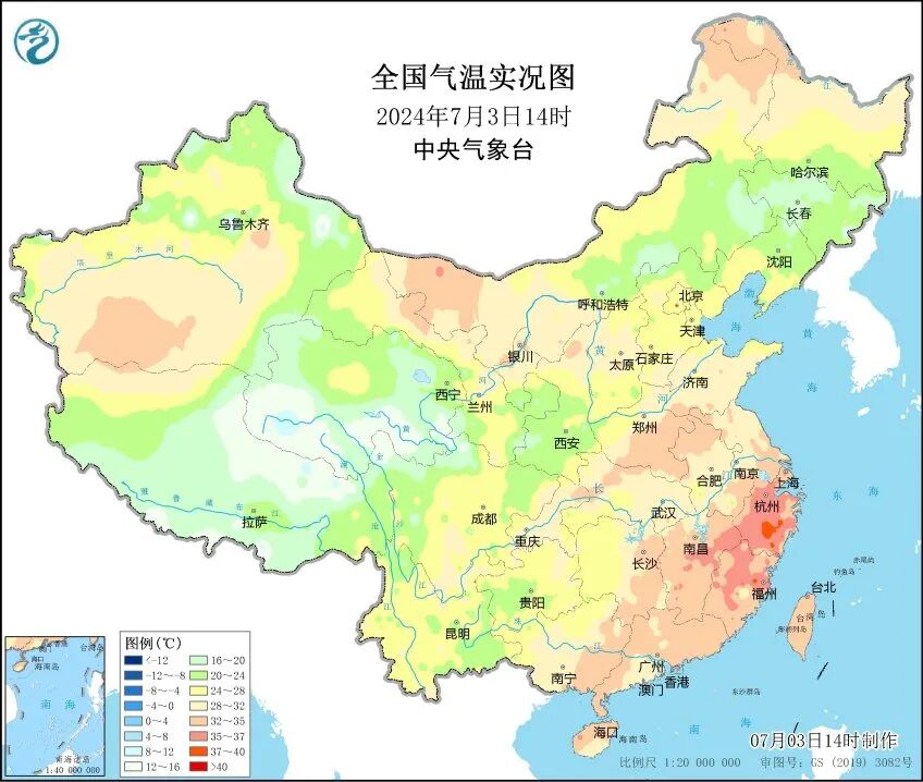 浙江、福建等地因为受到副热带高压的控制,出现闷热型高温。截至3日14时,浙江几乎包揽全国高温榜前十位,由于午后湿度高、风力小,部分站点体感温度甚至超过42℃。