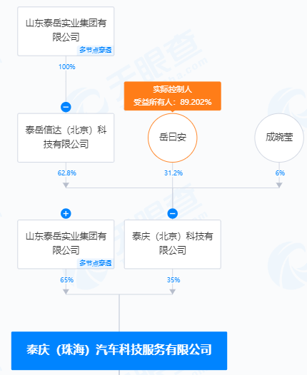 公司官网显示,泰岳集团的业务涵盖汽车产业、环境工程产业、文化产业。其中,汽车产业拥有多家4S店汽车经销商集团,涉及车企品牌包含梅赛德斯—奔驰、福特、北京现代、红旗。