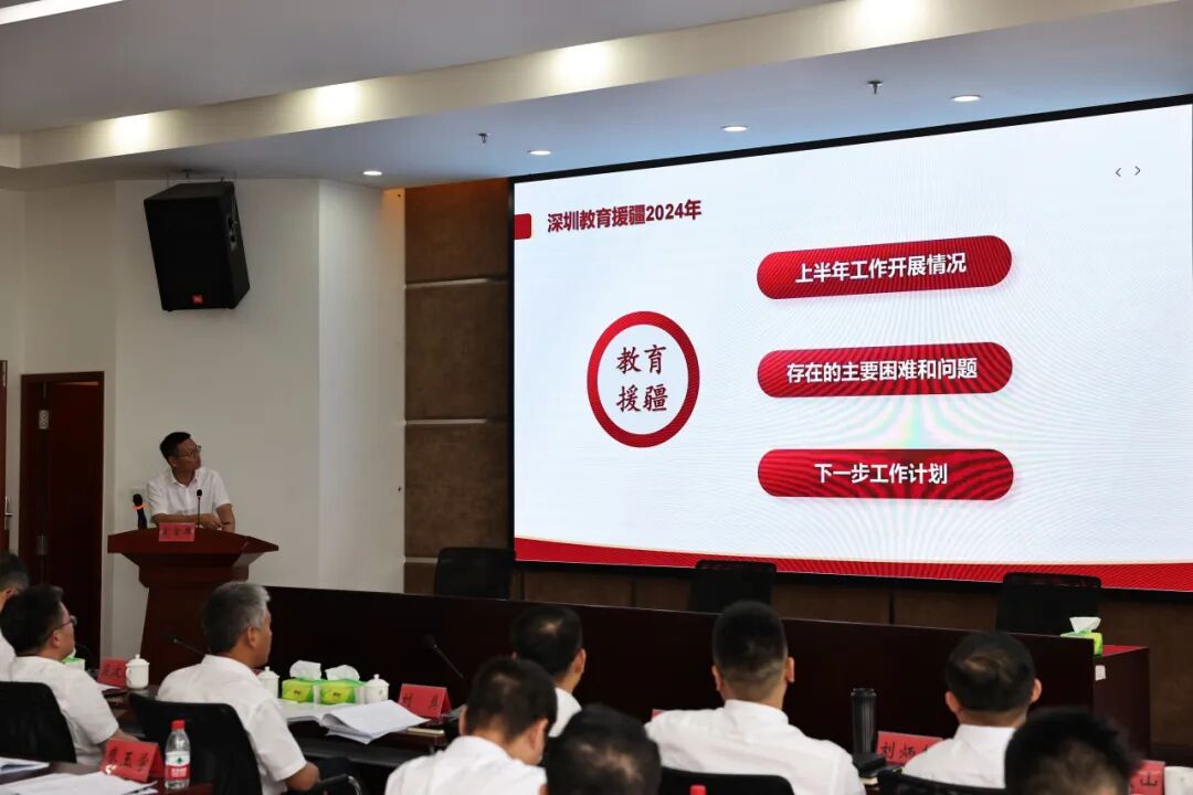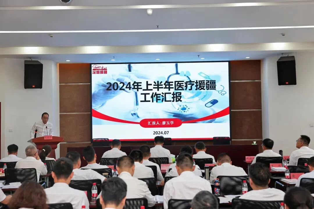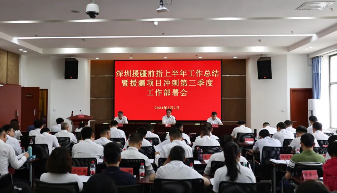 7月7日,深圳援疆前指召开2024年上半年工作总结暨援疆项目冲刺第三季度工作部署会。会议深入学习贯彻习近平总书记和上级有关指示、文件、会议精神,对上半年深圳援疆工作进行梳理总结,总结成绩、查找差距、明确目标,对三季度和下半年援疆工作进行安排部署。