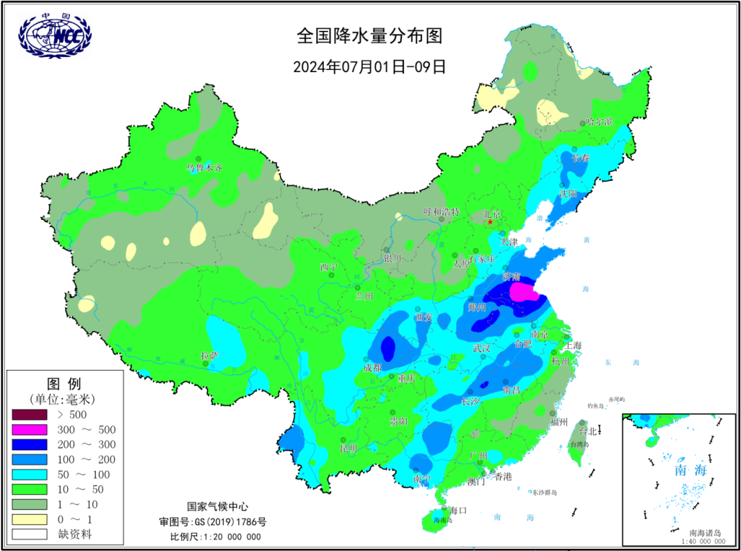 与此同时,我国中东部地区正遭遇强降雨天气。中央气象台7月9日傍晚发布暴雨黄色预警,这已是6月10日以来连续第30天发布暴雨预警。