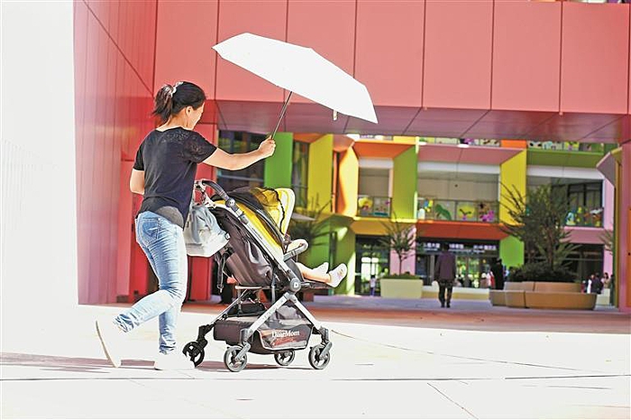▲7月9日天气炎热,市民打伞出行。深圳晚报记者 严文婷 摄