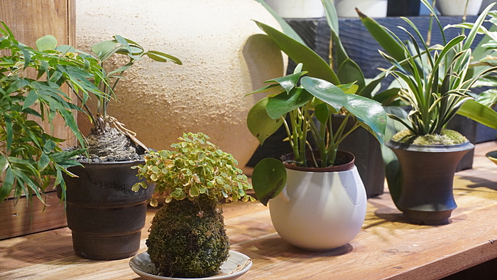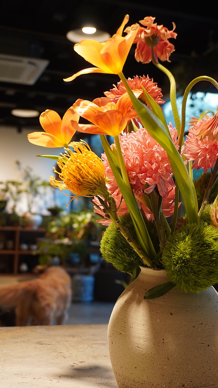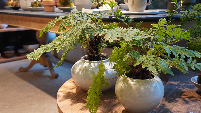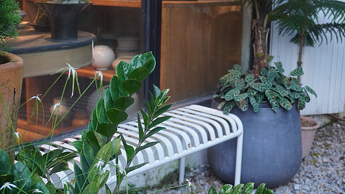 工作室主营花艺和陶艺,兼做一些咖啡和甜品。室内布置也多以花艺和陶艺产品为主,充满艺术氛围。各式各样的竺类植物是店里的特色,也是畅销品类,一进门就能感受到满目生机盎然的绿意。