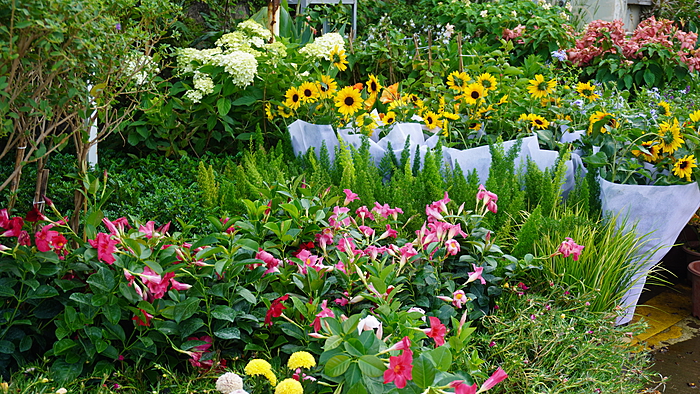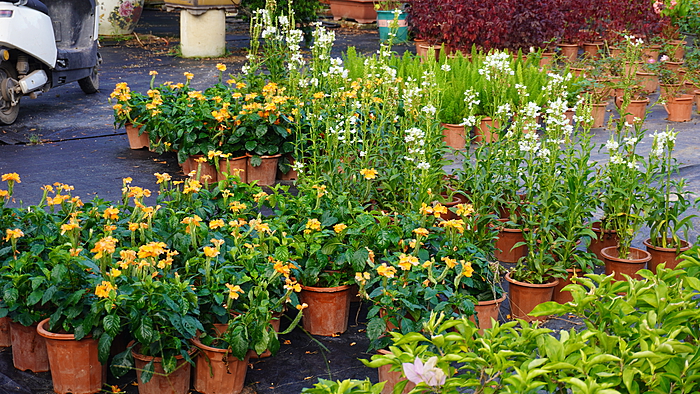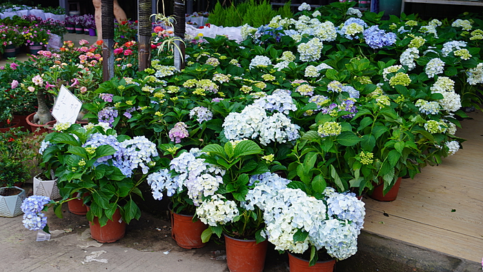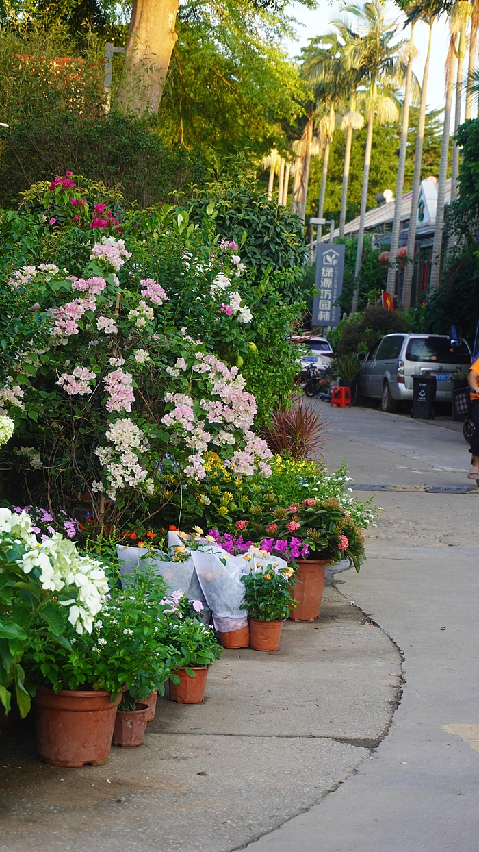 作为花卉中心,这里的植物种类繁多,每个商铺门口都被鲜花绿植环绕,极具观赏性。