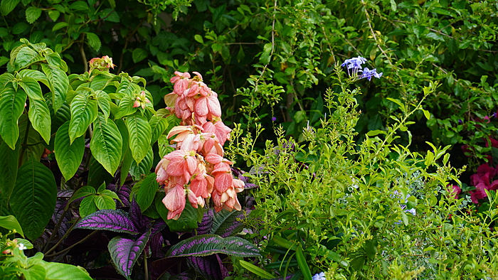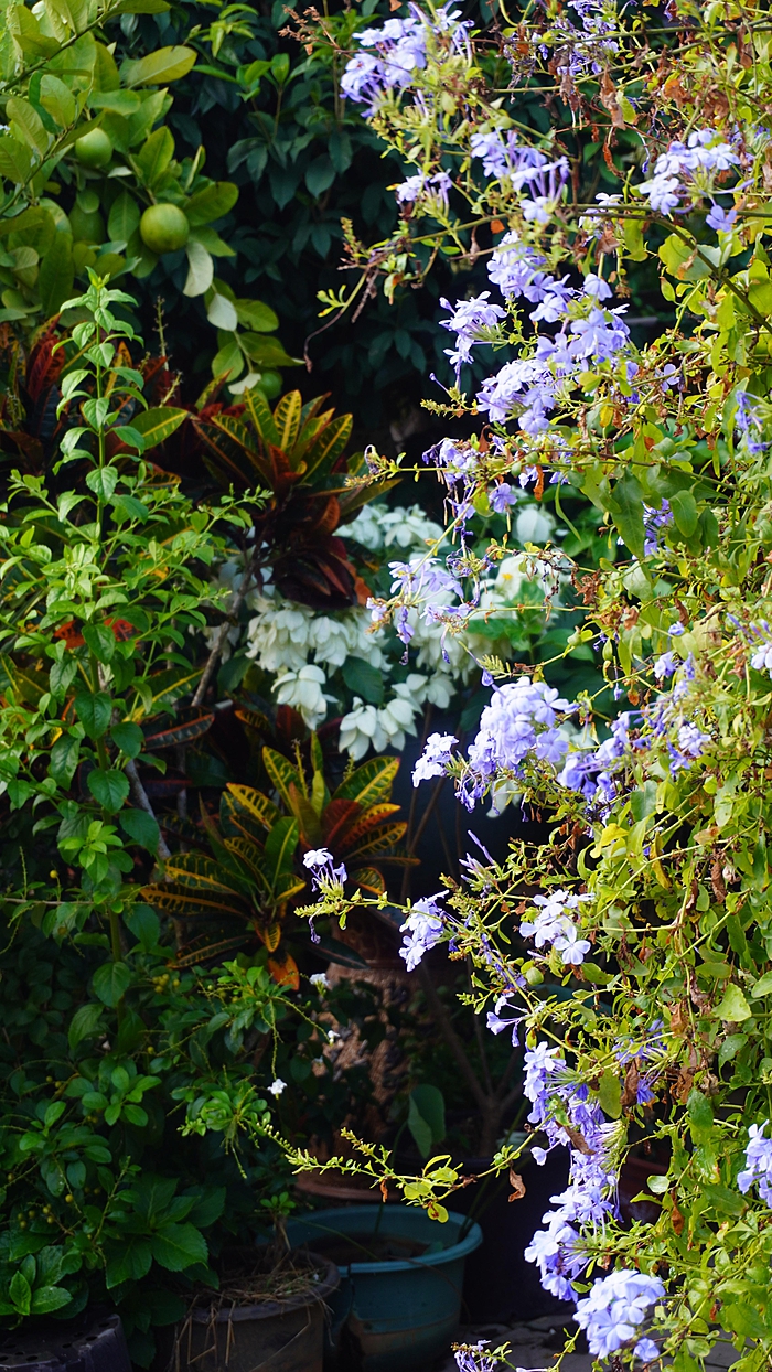 更多的是叫不上名字的花,蓝的、紫的、白的、粉的......或挂满枝头,或爬上墙头,或肆意绽放于道路尽头,无论从哪个视角观赏,都能在不经意间捕捉一份风雅和意趣。