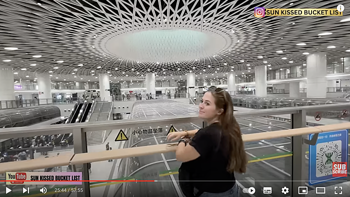 ▲外国博主体验深圳地铁智能化进站、自动驾驶技术。