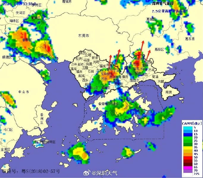 深圳市气象台2024年07月12日13时28分将雷电预警信号扩展至龙岗区(横岗、布吉、龙岗、坪地、龙城、南湾、平湖、园山、宝龙街道)。