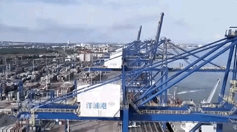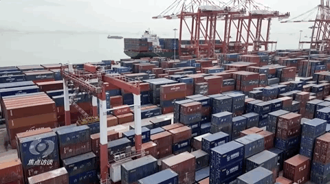 广州南沙港三期码头,吊车繁忙地抓吊各色集装箱装船,准备出海。