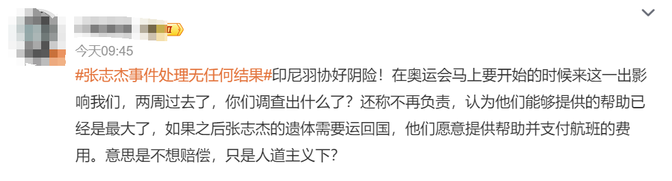 在本月14日,印尼媒体采访到了印尼羽协的官员,该官员承认他们不再等待张志杰家人的决定,已经撤回对张志杰事件的处理团队。