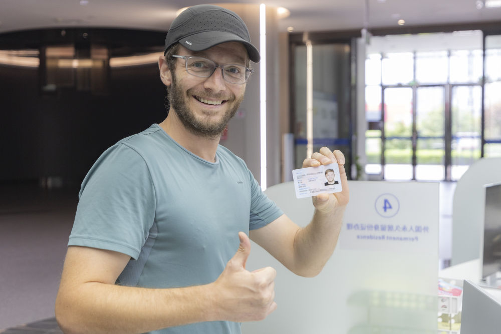 7月9日,在重庆市公安局出入境管理局移民事务服务中心,外籍人员展示刚申领到的“五星卡”。新华社记者 黄伟 摄
