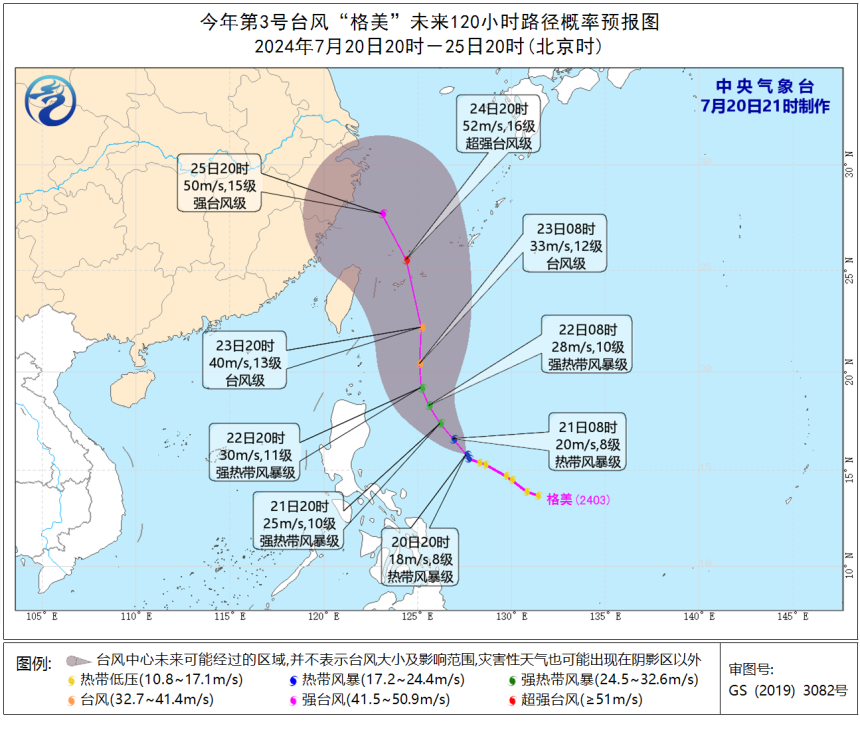 在今天(20日)14时,菲律宾以东洋面的热带低压加强为今年第3号台风“格美”(热带风暴级)。