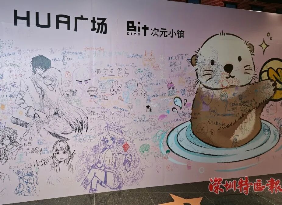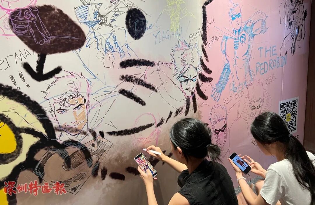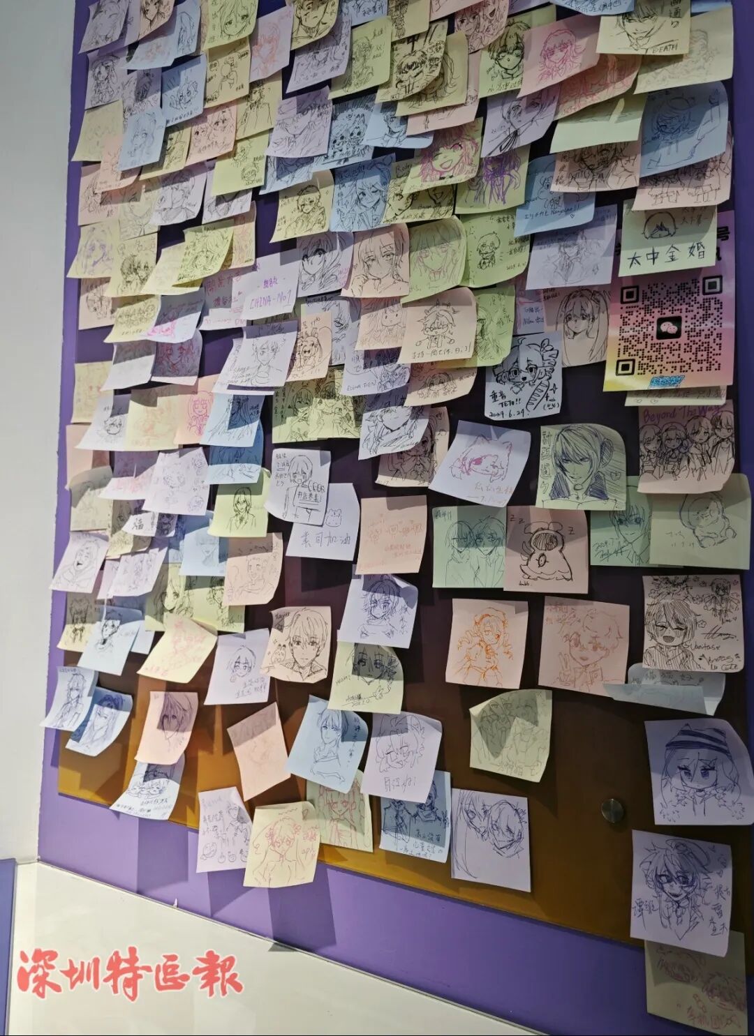 二次元族群在打卡墙上画下自己喜爱的角色。