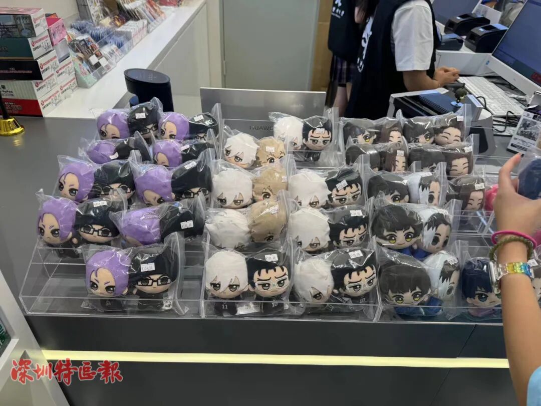 “现在线下谷店越来越多了我很开心,因为有些之前买不到的谷子或是很高价的谷子,现在能在线下并且在心理价位范围买到了!”她指着收银台旁边的棉花娃娃跟记者说。