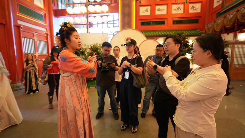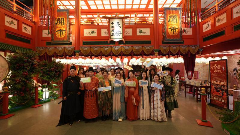 最后一站来到位于曲江新区的唐风市井街区长安十二时辰内,采风团成员穿上汉服,一秒入唐。“在这里,沉浸式感受了唐代人的生活,对于唐诗也有了更深层次的理解。”